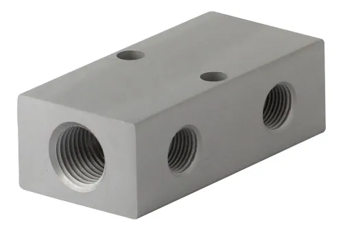4-fach Verteilerleiste (4x Innengewinde BSP) zur Anwendung in pneumatischen Systemen, die es ermöglicht, Druckluft unter Druck auf mehrere andere Zweige zu verteilen. Sie verfügt über zusätzliche Bohrungen, die eine Befestigung an der gewünschten Stelle der Installation ermöglichen. Betriebsdruck: 12 bar. Betriebstemperatur: von -10°C bis +80°C. Material: eloxiertes Aluminium.