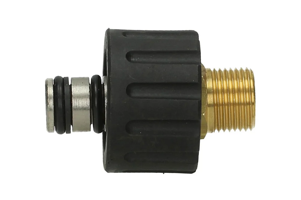 Dreiteiliger langer Adapter für Hochdruckreinigungsgeräte mit metrischem Anschluss M22x1,5. Material: Messing. Betriebsdruck: bis zu 280 bar. Betriebstemperatur: bis zu +160°C.