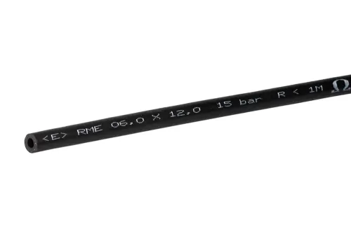 Starker Druckschlauch, der für den Transport und Umschlag von Rohöl, petrochemischen Produkten sowie Bohrschlamm, gemischt mit Rohöl (bis zu 50% aromatische Verbindungen), bestimmt ist. Kann auch für Zement, Baryt, Meerwasser und Sole verwendet werden. Innenschicht aus schwarzem, glattem, antistatischem NBR-Gummi. Verstärkung durch Schichten aus hochfestem synthetischem Kord. Verfügt über einen Kupferdraht, der die elektrische Kontinuität zwischen den Schlauchenden gewährleistet. Außenschicht aus chloroprenem CR-Gummi, schwer entflammbar, abriebfest, ozon-, meerwasser- und witterungsbeständig. Entwickelt als spezieller OFFSHORE-Schlauch für den Einsatz auf Bohrplattformen. Weit verbreitet auf Plattformen in der Nordsee. Kann erfolgreich in landgestützten Anwendungen eingesetzt werden. Innenschicht: schwarzer NBR-Gummi. Verstärkung: synthetischer Kord. Außenschicht: schwarzer CR-Gummi. Betriebsdruck: 20 bar. Betriebstemperatur: von -30°C bis +85°C.