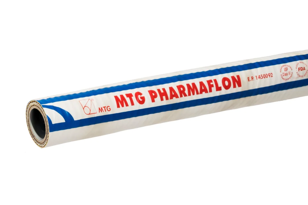 Saug- und Druckschlauch, der für den Transport von pharmazeutischen, kosmetischen, lebensmitteltechnischen und chemischen Produkten bestimmt ist (Auswahl gemäß den Richtlinien im Kapitel „Chemieschläuche“). Enthält keine Weichmacher, Phthalate oder tierische Bestandteile. Er zeichnet sich durch hohe thermische und mechanische Beständigkeit aus. Er ist eine hervorragende Lösung für verarbeitende Industrien, die höchste Sicherheit beim Transfer von Produkten mit hoher Reinheit erfordern. Die Außenschicht ist abriebfest sowie beständig gegen Ozon und Witterungseinflüsse. Er verfügt über zwei Kupferdrähte, die die elektrische Kontinuität zwischen den Schlauchenden gewährleisten. Normen und Anforderungen: 1) Allgemeine EC 2002/95 (RoHS), EC 1907/2006 (REACH). 2) Lebensmittelindustrie, Kontakt mit Lebensmitteln 1935/2004/EC sowie 2023/2006/EU (GMP). Innenschicht konform mit 10/2011/EC, D.M. 21/03/73, FDA 21 CFR 177.1550. Außenschicht konform mit FDA 21 CFR 177.2600, D.M. 21/03/73. 3) Pharmazeutische Industrie USP Klasse VI (Innenschicht). Montage: Es sollten glatte Schlauchenden ohne scharfe oder hohe Rillen verwendet werden, die beim Anziehen die innere MFA-Schicht durchschneiden oder beschädigen könnten. Der Durchmesser des Schlauchendes sollte genau auf den Schlauchdurchmesser abgestimmt sein, um Dichtheit zu gewährleisten. Montage mit Presshülsen oder Schellen. Innenschicht: glattes fluoriertes Polymer MFA. Verstärkung: synthetische Kordel, Stahldrahtspirale. Außenschicht: glattes EPDM-Gummi. Betriebsdruck: 10 bar. Vakuum: 0,9 bar. Betriebstemperatur: -50°C bis +170°C (für die meisten Chemikalien).