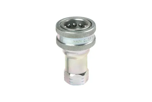 Schnellkupplungsstecker mit Innengewinde BSP oder NPT (3/16″ ÷ 1″), mit Ventil, ideal geeignet für gasförmige Medien. Austauschbar mit ISO-B-Schnellkupplungen anderer Hersteller. Anwendung: Hydraulik (Hydrauliköl), Industrie (Wasser, Dampf, Kraftstoffe und Öle, Gase, Chemikalien). Betriebsdruck: bis zu 240 bar (abhängig von der Größe der Schnellkupplung), (Sicherheitsfaktor 4:1). Material: Stahl AISI 303. Dichtung: NBR (von -40°C bis +121°C).