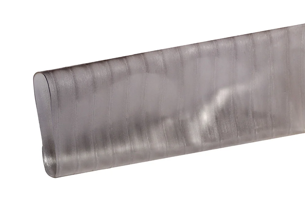 Leichter, glatter, flach aufrollbarer Schlauch zur Ableitung von Schüttgütern. Besonders geeignet für Installationen, die Vibrationen und mechanischen Beschädigungen ausgesetzt sind. Geeignet für den Kontakt mit Lebensmitteln und in der pharmazeutischen Industrie, da er geschmacks- und geruchsneutral ist und den Anforderungen der FDA (21CFR177.2600) entspricht. Er unterliegt keiner Hydrolyse und ist resistent gegen Mikroben. Ebenfalls beständig gegen Mineralöle, Alterung, Witterungseinflüsse, Ozon, UV-Strahlung und viele chemische Substanzen. Schlauchmaterial: transparenter Polyurethan. Betriebsdruck: von 0,135 bar bis 1,03 bar, abhängig vom Schlauchdurchmesser. Betriebstemperatur: -40°C bis +90°C (kurzzeitig +125°C).