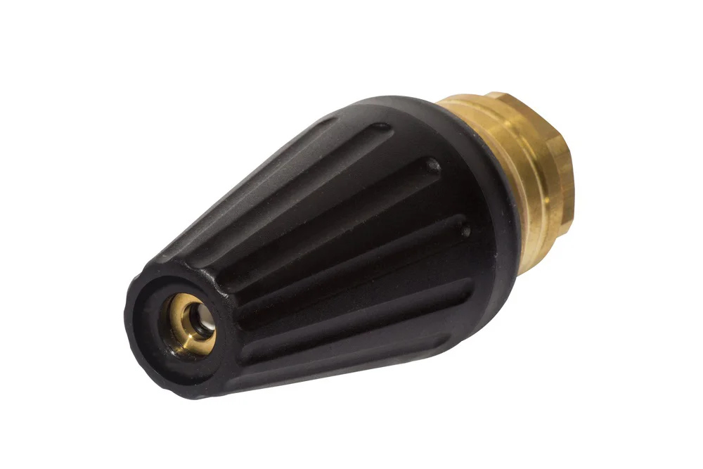 Rotationskopf ST-458 mit Keramikeinsatz, Sprühwinkel 20°. Zur Identifizierung der Kalibrierung in verschiedenen Farben gekennzeichnet. Betriebsdruck: 200 – 400 bar. Material: Messing und Kunststoff, Adapter aus Edelstahl. Betriebstemperatur: bis +100°C.