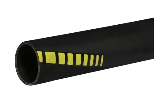 Förderschlauch zur Übertragung von flüssigen Produkten der petrochemischen Industrie, die bis zu 50% aromatische Kohlenwasserstoffe, Kraftstoffe, Benzin, Diesel, Heizöl, Schmieröle usw. enthalten. Innenschicht aus schwarzem, glattem NBR-Gummi. Verstärkung durch synthetische Kord. Verfügt über Kupferlitzen, die elektrische Kontinuität zwischen den Schlauchenden gewährleisten – vorausgesetzt, sie sind korrekt an die Enden angeschlossen. Außenschicht aus schwarzem NBR-Gummi, öl- und witterungsbeständig. Das relativ geringe Gewicht und die flexible Konstruktion des Schlauchs machen ihn leicht zu handhaben und er zeichnet sich durch eine breite, universelle Anwendung für den Transport von Kraftstoff oder anderen kompatiblen Medien unter typischen Arbeitsbedingungen aus. Innenschicht: schwarzer NBR-Gummi. Verstärkung: synthetische Kord. Außenschicht: schwarzer NBR-Gummi. Betriebsdruck: 10 bar. Betriebstemperatur: von -30°C bis +80°C.