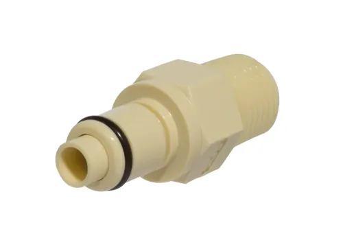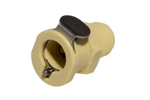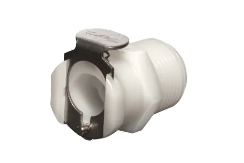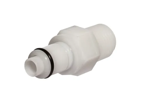 Ausführung wählen Dieses Produkt weist mehrere Varianten auf. Die Optionen können auf der Produktseite gewählt werden / DetailsMittelgroßer Schnellkupplungsstecker mit Außengewinde NPT, geeignet für Reinigungsanlagen, Deionisierungswasserfiltration, Industrieautomaten, Leckagedetektion usw. Material: Polypropylen. Dichtung: EPDM-O-Ring. Betriebsdruck: bis zu 8,3 bar. Betriebstemperatur: von 0°C bis +71°C.