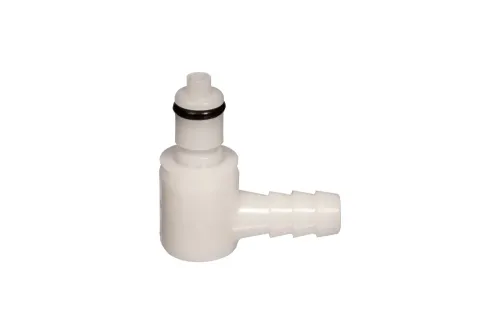 Ausführung wählen Dieses Produkt weist mehrere Varianten auf. Die Optionen können auf der Produktseite gewählt werden / DetailsMittelgroßer 90°-Stecker eines Schnellkupplungssystems mit Schlauchmutter, geeignet für Waschsysteme, Deionisierungswasserfiltration, Industrieautomaten, Leckagedetektion usw. Länge L [mm] - Gesamtlänge. Material: Acetal. Dichtung: O-Ring aus NBR. Betriebsdruck: bis zu 8,3 bar. Betriebstemperatur: von -40°C bis +82°C.