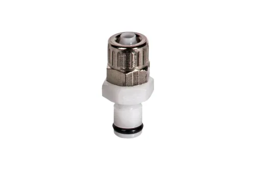 Ausführung wählen Dieses Produkt weist mehrere Varianten auf. Die Optionen können auf der Produktseite gewählt werden / DetailsDer Schnellkupplungsstecker für Schläuche mit Mutter ohne Ventil ist für die Gasdetektion, medizinische Geräte, chemische Analysatoren, Tintenstrahldrucker, als Ausstattung für optische Geräte usw. vorgesehen. Die Wirksamkeit der Verbindung wird durch ein hörbares Klicken signalisiert. Material: NBR, O-Ring. Betriebsdruck: bis zu 8,3 bar. Betriebstemperatur: von -40°C bis +82°C.