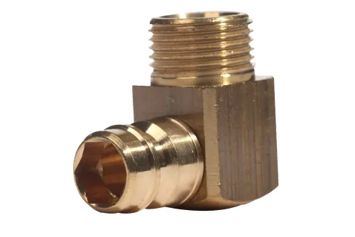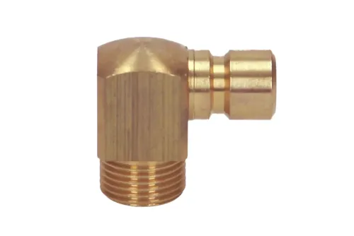 Ausführung wählen Dieses Produkt weist mehrere Varianten auf. Die Optionen können auf der Produktseite gewählt werden / DetailsWinkel-Schnellkupplungsstecker 90° DYROS Serie 90 mit Außengewinde ohne Ventil. Erhältlich mit metrischem oder BSP-Gewinde. Geeignet für Kühlflüssigkeiten in der Kunststoffverarbeitung, Druckluftanlagen, technische Gasflaschen und andere technische Bereiche. Material: Messing. Betriebsdruck: 15 bar.