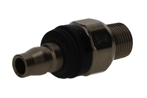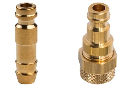 Ausführung wählen Dieses Produkt weist mehrere Varianten auf. Die Optionen können auf der Produktseite gewählt werden / DetailsSchnellkupplungsstecker mit freiem Durchgang, Eurostandard DN5 (MINI), Serie 21KA. Der Stecker ist in zwei Varianten erhältlich: mit geriffeltem Schlauchanschluss und mit Anschluss mit Mutter für thermoplastische Schläuche. Weit verbreitet in der Industrie, wo kleine Abmessungen bei hoher Durchflussleistung und geringem Druckabfall erforderlich sind. Betriebsdruck: 35 bar. Material: Messing. Betriebstemperatur: von -20°C bis +100°C.