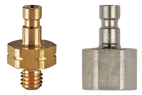 Ausführung wählen Dieses Produkt weist mehrere Varianten auf. Die Optionen können auf der Produktseite gewählt werden / DetailsMiniatur-Schnellkupplungsstecker DN1,5, ohne Ventil, mit metrischem Innen- oder Außengewinde, für Luft, neutrale Gase und Flüssigkeiten, wo geringe Abmessungen erforderlich sind. Erhältlich in zwei Varianten: aus unbehandeltem Messing und aus vernickeltem Messing. Betriebsdruck: 35 bar. Betriebstemperatur: von -20°C bis +100°C. Material: Messing oder vernickeltes Messing.