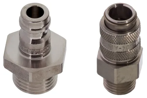 Ausführung wählen Dieses Produkt weist mehrere Varianten auf. Die Optionen können auf der Produktseite gewählt werden / DetailsEinseitig absperrende Schnellkupplungsstecker Serie 27KA DN 10 mit Außengewinde BSP. Medium: Druckluft, inerte Gase, Wasser. Betriebsdruck: 35 bar. Material: Stahl AISI 316Ti. Dichtung: FKM. Betriebstemperatur: von -15°C bis +200°C.