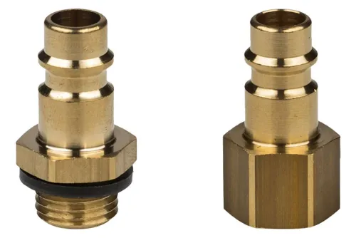 Ausführung wählen Dieses Produkt weist mehrere Varianten auf. Die Optionen können auf der Produktseite gewählt werden / DetailsSchnellkupplungsstecker mit dem gängigen Eurostandard-Profil DN7,2 ohne Ventil, mit Innen- oder Außengewinde BSP, hauptsächlich für Luft vorgesehen. Die Schnellkupplungen sind austauschbar mit allen nach Eurostandard DN7,2 ÷ 7,8 anderer Hersteller. Betriebsdruck: 35 bar. Material: Messing. Betriebstemperatur: von -20°C bis +100°C.