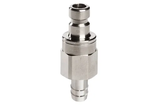 Ausführung wählen Dieses Produkt weist mehrere Varianten auf. Die Optionen können auf der Produktseite gewählt werden / DetailsSchnellkupplungsstecker ohne Ventil, DN5,5 mit Profil gemäß ISO 6150B (A-A-59439, MIL C-4109), Serie 1400KA / 1423KA, mit Schlauchanschluss. Hochwertiger Stecker, vielseitig im industriellen Bereich eingesetzt, hauptsächlich für Druckluft. Betriebsdruck: 35 bar. Material: gehärteter, vernickelter Stahl. Betriebstemperatur: von -20°C bis +100°C.