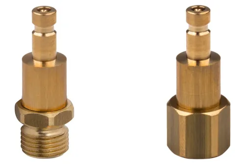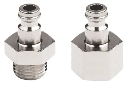 Ausführung wählen Dieses Produkt weist mehrere Varianten auf. Die Optionen können auf der Produktseite gewählt werden / DetailsStecker für Eurostandard-Schnellkupplung MINI DN 5, ohne Ventil, mit Außengewinde oder Innengewinde BSP, weit verbreitet in der Industrie (für Luft, Stickstoff und andere nicht brennbare Gase), wo geringe Abmessungen und hohe Durchflussleistung bei geringem Druckabfall erforderlich sind. Austauschbar mit RECTUS 21 und Schnellkupplungen mit EURO DN 5 Profil anderer Hersteller. Betriebsdruck: 35 bar. Betriebstemperatur: von -20°C bis +100°C. Material: Messing.
