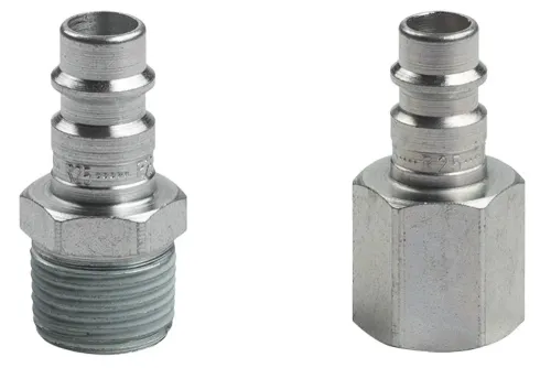 Ausführung wählen Dieses Produkt weist mehrere Varianten auf. Die Optionen können auf der Produktseite gewählt werden / DetailsUniverseller Schnellkupplungsstecker mit freiem Durchgang (ohne Ventil) DN7,4, mit Außengewinde BSP, BSPT oder mit Innengewinde BSP. Hauptsächlich für Druckluft und Gase, für kleinere und mittlere Werkzeuge und pneumatische Systeme bestimmt. Die Kupplungen der Serie 1300 sollten nicht mit der Serie 1300N verbunden werden. Betriebsdruck: 35 bar. Material: gehärteter, verzinkter Stahl, Betriebstemperatur: von -20°C bis +100°C.