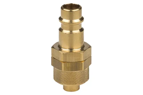 Ausführung wählen Dieses Produkt weist mehrere Varianten auf. Die Optionen können auf der Produktseite gewählt werden / DetailsSchnellkupplungsstecker mit dem gängigen Eurostandard-Profil DN7,2 ohne Ventil, mit Anschluss für einen thermoplastischen Schlauch mit Überwurfmutter. Bestimmt für die Verbindung von Schläuchen mit verschiedenen Komponenten von Anlagen und Ausrüstungen in pneumatischen Anwendungen (Luft, Stickstoff, andere nicht brennbare Gase). Die Schnellkupplungen sind austauschbar mit allen nach Eurostandard DN7,2 ÷ 7,8 anderer Hersteller. Der Stecker ist in zwei Varianten erhältlich: mit Mutter ohne Feder und mit Mutter mit Schutzfeder, die den Schlauch vor Abrieb, Knicken oder mechanischen Beschädigungen schützt. Betriebsdruck: bis zu 35 bar. Material: Messing. Betriebstemperatur: von -20°C bis +100°C.