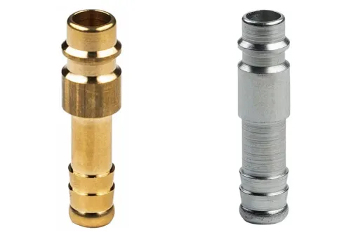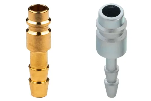 Ausführung wählen Dieses Produkt weist mehrere Varianten auf. Die Optionen können auf der Produktseite gewählt werden / DetailsSchnellkupplungsstecker mit dem gängigen Eurostandard-Profil DN7,2 ohne Ventil, mit geriffeltem Schlauchanschluss, zur Verwendung in pneumatischen Anlagen (Luft, Stickstoff, andere nicht brennbare Gase). Bei intensiver Nutzung, Vibrationen und pneumatischen Werkzeugen wird die Verwendung von Steckern aus Kohlenstoffstahl empfohlen (geringerer Verschleiß). Die Schnellkupplungen sind austauschbar mit allen nach Eurostandard DN7,2 ÷ 7,8, anderer Hersteller. Betriebsdruck: bis zu 35 bar. Material: Messing oder verzinkter Kohlenstoffstahl. Betriebstemperatur: von -20°C bis +100°C.