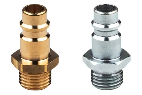 Ausführung wählen Dieses Produkt weist mehrere Varianten auf. Die Optionen können auf der Produktseite gewählt werden / DetailsSchnellkupplungsstecker mit dem gängigen Eurostandard-Profil DN7,2 ohne Ventil, mit Außengewinde BSP, zur Verwendung in pneumatischen Anlagen (Luft, Stickstoff, andere nicht brennbare Gase). Bei intensiver Nutzung, Vibrationen und pneumatischen Werkzeugen wird die Verwendung von Steckern aus Kohlenstoffstahl empfohlen (geringerer Verschleiß). Die Schnellkupplungen sind mit allen anderen nach Eurostandard DN7,2 ÷ 7,8 anderer Hersteller austauschbar. Betriebsdruck: bis zu 35 bar. Material: Messing oder verzinkter Kohlenstoffstahl. Betriebstemperatur: von -20°C bis +100°C.