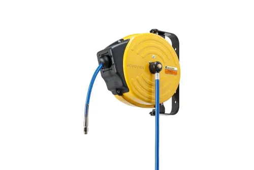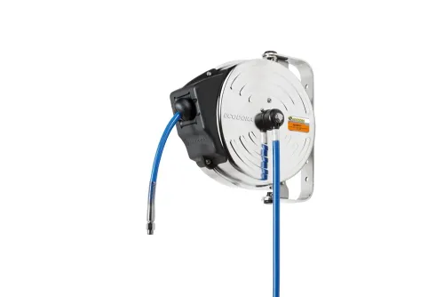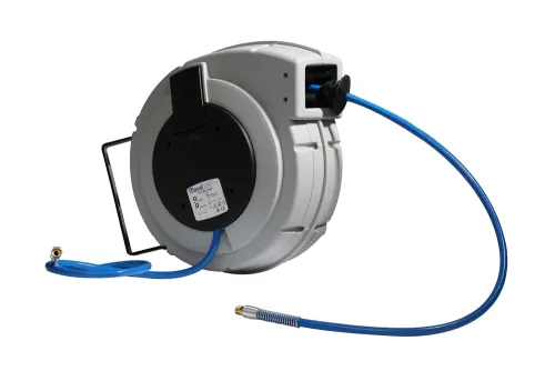 In Federbetriebene Schlauchaufroller (automatischen Trommelaufrollern) wird der Schlauch manuell auf die gewünschte Länge herausgezogen und durch einen Sperrklinkenmechanismus blockiert. Je weiter der Schlauch aus der Trommel gezogen wird, desto stärker wird die Feder gespannt. Nach dem Entriegeln der Sperrklinke durch leichtes Ziehen am Schlauch sorgt die Feder für das automatische Aufwickeln des Schlauchs auf die Trommelspule, wobei der Schlauch manuell geführt wird. Automatische Federaufroller werden häufig in Werkstätten und der Industrie eingesetzt, vor allem für relativ leichte und kurze Schläuche (einige Dutzend Meter, abhängig vom Durchmesser; die Schlauchlänge wird durch die Federkraft und -länge begrenzt). Tubes International bietet Federaufroller mit werkseitig eingebautem Schlauch sowie Aufroller ohne Schlauch an, in die wir auf Wunsch den für die Arbeitsbedingungen geeigneten Schlauch mit den entsprechenden Armaturen und Zubehör (Pistolen, Strahlrohre usw.) montieren können.